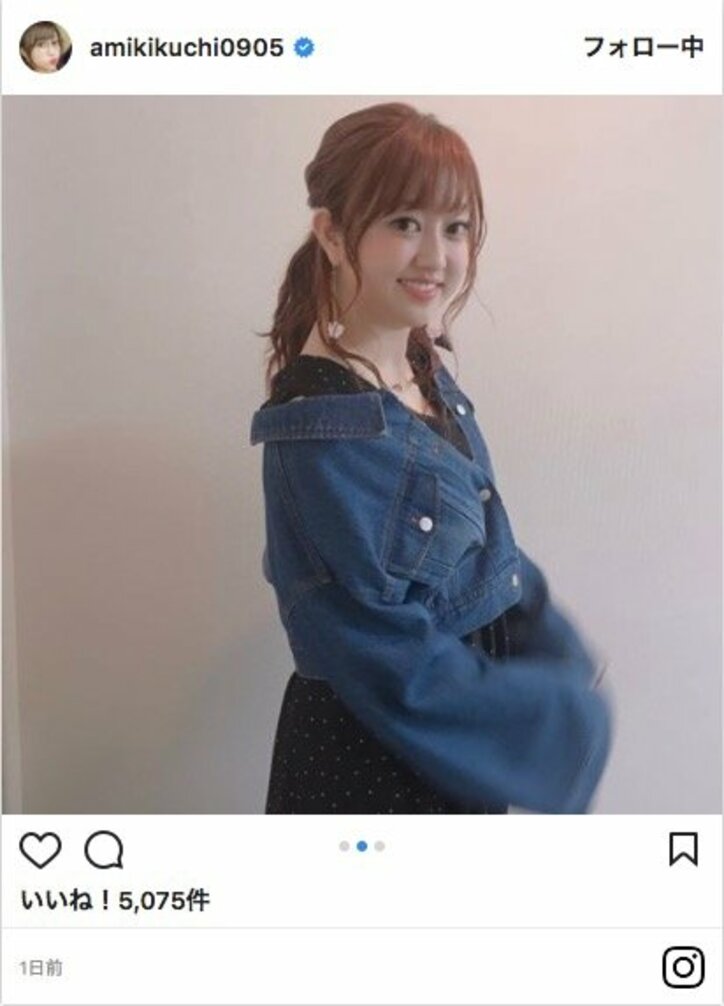 水玉のワンピースにGジャンという格好に、ファンからは「素敵な洋服で 今日も可愛いですね」「かわいすぎます」「キュートなオシャレで可愛い」と絶賛の声が寄せられた。