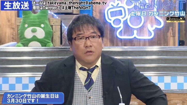 カンニング竹山、「めちゃイケ」「みなおか」最終回と“テレビ番組離れ”について語る 2019/03/15 09:37 拡大する 3月31日深夜、『カンニング竹山の土曜The NIGHT』(AbemaTV)が放送された。 番組冒頭で竹山は、戸籍上の誕生日は4月2日だが実際に生まれたのは3月30日だとして、47歳になったことを報告。前日の29日は父親の命日で、竹山が21歳のときに他界したが、父親よりも妻と過ごした年月が長くなってきたことから「だいぶ歳とってきたんだな」と感じる様になったという。 そんな竹山は3月31日に最終回を迎えた『めちゃ×2イケてるッ!』について「22年やったと思うんですけど。22年やったってことはね、『めちゃイケ』はじまったときに生まれた子が22歳になってるわけですよね」と語り「こないだ、とんねるずさんの番組は30年、『みなさんのおかげです』が始まったときに生まれた子は30歳になってるわけですよね」と、2つの番組が経てきた長い時間に言及する。 続きを読む