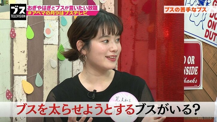 筧美和子、元なでしこ丸山桂里奈も被害を告白「太らせようとするブス」に共感の声 2019/03/15 09:37 拡大する おぎやはぎの小木博明と矢作兼がMCを務めるトークバラエティ『おぎやはぎの「ブス」テレビ』♯64(毎週月曜よる9時~)が4月23日、AbemaTV(アベマTV)にて 放送され、元なでしこジャパンの丸山桂里奈が“ブス枠”ゲストに登場。「太らせようとするブス」への怒りを明かし、“美人枠”ゲストの筧美和子が共感を示す場面があった。 23日放送回で「苦手なブス」が話題に挙がると、丸山は「(食べ物を)勧めてきて太らせようとしてくるブス」が苦手だと告白。すると“ブス枠”の出演者たちから「いる!」という声が相次いだ。丸山によるとそのブスは「おいしいから食べなよ」と勧めてくるものの、自分は食べ物に全く手をつけないのだという。 続きを読む