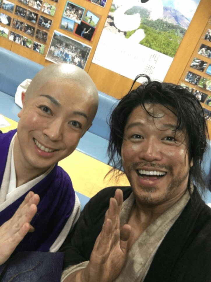 『西郷どん』鈴木亮平、尾上菊之助と満面の笑み2ショット&撮影エピソードも披露 2019/10/24 21:29 拡大する NHK大河ドラマ『西郷どん』で主演を務める俳優の鈴木亮平(35)が30日に自身のブログを更新。撮影エピソードや、“こんな底抜けに明るい二人”と月照を演じる歌舞伎俳優の尾上菊之助(40)と満面の笑みを浮かべる2ショット写真を公開し、反響を呼んでいる。 鈴木亮平公式ブログより 同ドラマは、薩摩藩の下級武士の長男に生まれ、2度の島流し、3度の結婚を経験し、幕末志士の一人として「勇気と実行力」で時代を切り開いた男・西郷隆盛の生涯を描く。鈴木は、西郷隆盛の18歳から死没する49歳までを演じる。 続きを読む