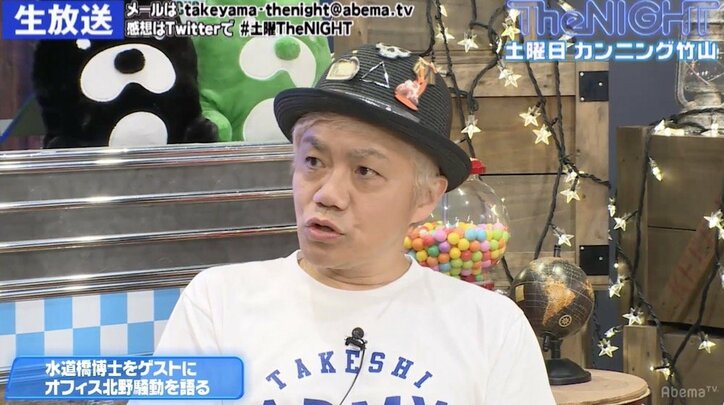 水道橋博士、オフィス北野には「たけし軍団の奴隷として残っている」 2019/03/15 09:37 拡大する 5日深夜、「カンニング竹山の土曜The NIGHT」(AbemaTV)が放送された。同番組では、その週に起こったさまざまなニュースを独自の視点で読み解き、ワイドショーなどで発言した竹山自身のトークも振り返るコーナーや、竹山が“今、話してみたい”話題の人物をスタジオに招き、ゲストにまつわるさまざまな情報や噂の真相について語っていく。 博士いわく「タカさん、枝豆さん、ダンカンさんのスリーカードは暴力装置」と説明をしつつ、その3者の後輩にあたる博士は「僕は何も言えない。(軍団の中では)純粋な奴隷ですから」と明かす。 続きを読む