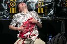 その後、玉袋と麻美は寸劇を披露。「許せないわ!私だけを愛してるって言ったじゃない!!」と叫びながら麻美は発砲。「パパン!」と銃声が鳴り響き、玉袋に命中。血のりが飛び散り、玉袋は胸を押さえ苦しそうな表情に。しかし、その後もしぶとく倒れることはなかったため、麻美は4発発砲。計5発の銃弾は全て玉袋の胴体部分に命中し、ステージは血のりまみれとなった。