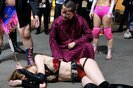なんのことか分からない人は分からないなりに激しくもデタラメな闘いが楽しめたはずの、この路上プロレス。最後の闘いではディーノ&カサンドラ&木高イサミが高木三四郎&一般人・澤宗紀&里村明衣子の「変態仙台大社長」と激突した。