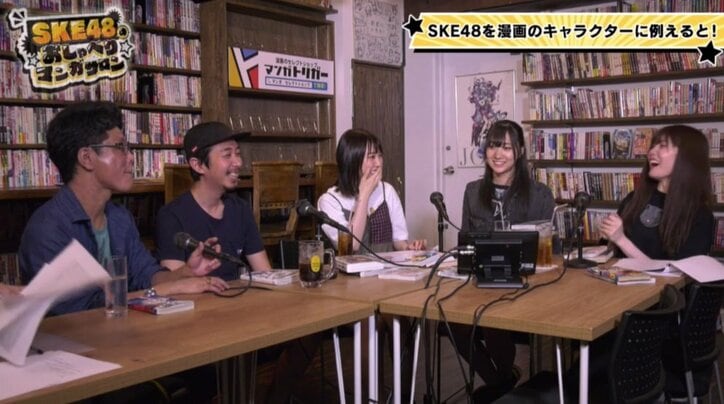 同番組は、“漫活アイドルトークショー”。5月29日に生放送された第1回では、一色嶺奈、熊崎晴香、谷真理佳がMCを務めて、漫画家のかっぴー(『左ききのエレン』)、江藤俊司(『終極エンゲージ』)をゲストに迎え漫画トークを繰り広げた。番組では、事前に募った「SKE48を漫画のキャラクターに例えると?」というアンケートの結果も発表された。