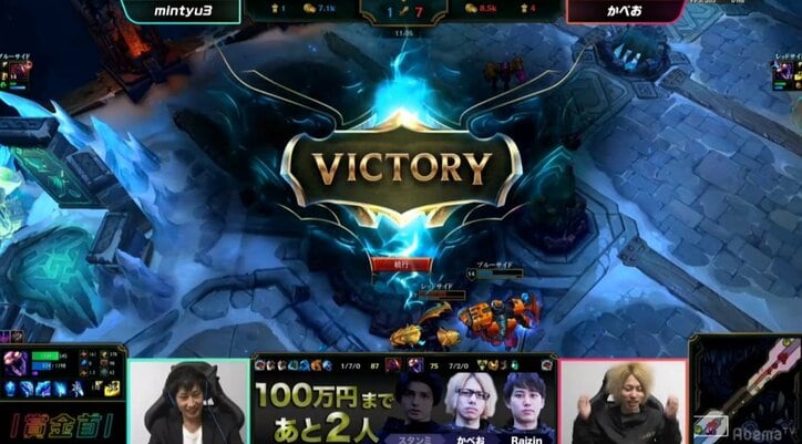賞金首スタンミ・かべお、東大LoLサークルからの刺客と留年大学生の挑戦を退ける 2019/03/15 09:37 拡大する 5月29日にAbemaTVで放送された「勝ったら100万円!LoL賞金首<本戦>#3」に、東大生ではないながら東大LoLサークルに所属するVashyron(ヴァシュロン)が挑戦者として登場した。しかし、同サークルは2017年国内学生大会優勝の実力をもつ名門サークル。普段は実況・解説をしていると語るVashyronは、そこでえた観察力と実戦力を武器に賞金首に挑んだ。 賞金首先鋒として迎え撃つスタンミとの対戦では、接近戦を得意とし、攻撃中に体力を回復できる能力を持つ「トリンダメア」を選択。対するスタンミも接近戦が得意で、戦闘態勢にない間に体力を回復できる能力を持つ「ガレン」を選択した。 続きを読む