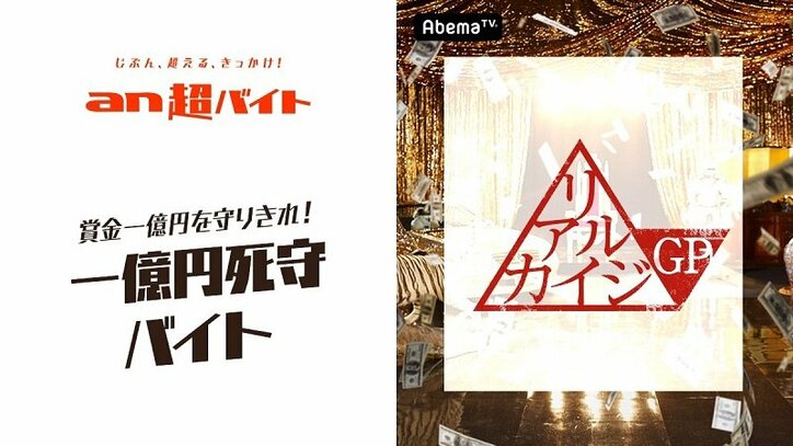 『リアルカイジGP』では「an超バイト」の新企画として、決勝戦の生放送の現場にて、全ての参加者の欲望の目にさらされる賞金を守りきる、“1億円死守バイト”を2名募集中。