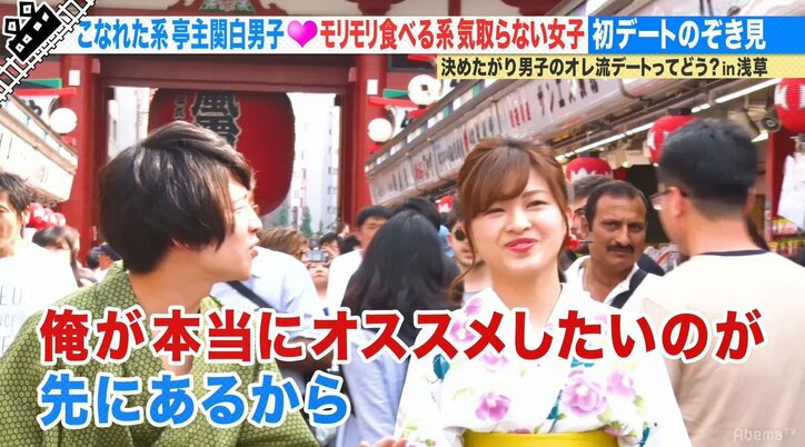 デートコースを全て決めたがる男子の“オレ流”デートはあり?それともなし!? 2019/10/24 21:12 拡大する 6月9日(土)よる11時30分~、AbemaTV(アべマTV)のAbemaSPECIALチャンネルにて“沿線恋愛リアリティーショー”『途中下車の恋街』#4が放送され、相手女性の意見を聞かず、デート内容を決めたがる男性が登場した。 本番組は、恋人募集中の男性が慣れ親しんだ街に初めて降り立った女性と1日デートを楽しみ、最終電車までに恋が生まれるのかを追う“沿線恋愛リアリティーショー”。毎回、異なる街を舞台に、男女が出会う様子から、美しい景色やグルメ、それぞれの街が作り出す独特の世界に酔いしれる様子をのぞき見。そして終電間際、「もう少し僕と一緒にいてくれませんか?」と尋ねる男性に女性が回答するまでのドキドキの初デートを追っていく。 続きを読む