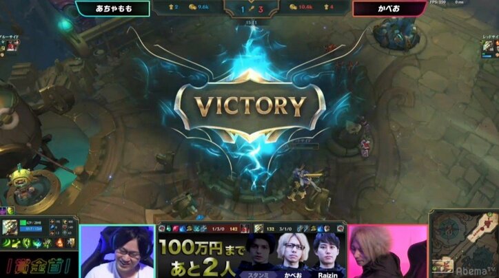 ドSプロゲーマーあちゃももの挑戦に弱気発言連発のかべお、接戦制し強気復活! 2019/03/15 09:37 拡大する リーグ・オブ・レジェンド日本サーバーランクにおいて最高位「チャレンジャー」の称号を持つプロゲーマーあちゃももと、賞金首としてこれまで6戦無敗を誇る絶対障壁かべおの対決が、6月26日のAbemaTV「勝ったら100万円!LoL賞金首<本戦>#6」で放送された。 歴代最強ともいえる挑戦者を前に、かべおは試合前「今回弱気で、raizinまでいってしまうんではないかと。大将にまかせようかな」と、これまでとは違い弱気な発言を口にした。いざ試合が始まると、開始1分にしてかべおにいきなりファーストブラッドを獲得できる好機がやってくる。しかし、わずかにダメージ量が足りず、かべおは好機を逃してしまった。ここから戦況は我慢の時間帯に突入した。 続きを読む