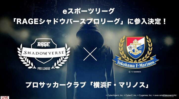 横浜F・マリノスがeスポーツに参戦!「RAGE Shadowverse PRO LEAGUE」への加入を発表 2019/03/15 09:37 拡大する 7月1日にAbemaTVで放送された「RAGE Shadowverse Pro League 第7節」番組内で、シャドウバースプロリーグに「横浜F・マリノス」が新チームとして加わることが明かされた。同リーグは現在「名古屋OJAベビースター」「auデトネーション」「よしもとLibalent」「レバンガ☆SAPPORO」の4チームで構成されているが、9月から始まる2ndシーズンからは新たに「AXIZ」「横浜F・マリノス」を加え6チームで争われる。 続きを読む