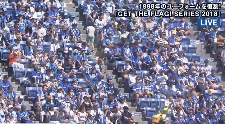 横浜DeNAファン、若手の急成長で「応援歌が覚えきれない!」とうれしい悩み 2019/10/24 20:50 拡大する 苦境と思うか、チャンスと捉えるか。3・4月は13勝11敗。5月は10勝10敗2分け。6月は9勝15敗と負け越した横浜DeNA。29日の試合ではホセ・ロペスが一軍復帰を自ら祝うアーチをかけたものの、翌日に再び右太ももを痛めて離脱。梶谷隆幸のほか、一時は筒香嘉智、ネフタリ・ソト、大和らを欠き、日替わりでフレッシュな顔ぶれが並ぶ状況だった。 昨年、守備のミスから2軍に降格し、戸柱恭孝から「這い上がってこい」とメッセージをもらい、言葉通りに這い上がった山下幸輝。楽天戦でサヨナラタイムリーヒットを放つと、涙を流し戸柱と抱き合った。4月に1軍を勝ち取るも、結果を残せずファーム行きとなった佐野恵太も帰ってきた。6月29日の広島戦では8回に神里和毅の3ランホームランで追いつき、佐野が9回にサヨナラヒットで決め、ナインから水をかけられ手荒い祝福を受けた。 続きを読む
