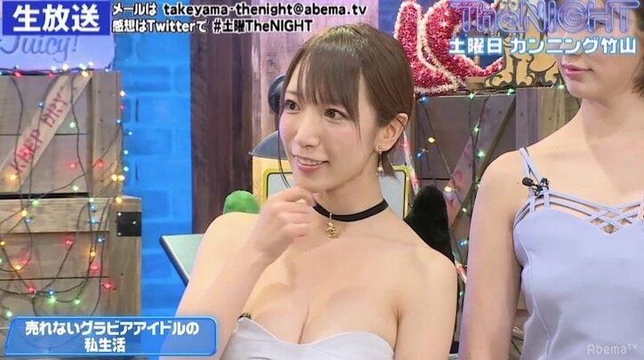 “パパ活”しているグラドルはいるのか?現役グラドルに聞く 2019/03/15 09:37 拡大する 7日深夜、『カンニング竹山の土曜The NIGHT』(AbemaTV)が放送された。 番組にはAbemaTVでの新レギュラー獲得を目指すアイドルたちが出演し、竹山やプロデューサー、視聴者に対してアピール合戦を繰り広げた。 清水あいりは自身の関連グッズをフリマアプリの『メルカリ』で売ったこともあると、生々しい金銭事情を告白する。 「“ギャラ飲み”とかも聞くんですけど、誘いもあったんですけど事務所が固くて」と、お金をもらって参加する飲み会“ギャラ飲み”に行けないと嘆くと、竹山は「ちゃんとしてる事務所だったらそう(禁止)だよ!」とツッコミを入れた。 続きを読む