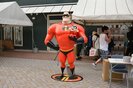 野外ステージでは、ダンスの振付を行った森奥先生とキッズ・ダンサーが登場し、森奥先生が「皆さん、元気ですかー?イエーーーイ!」と元気一杯に挨拶し、キッズ・ダンサーと共に、簡単なダンスレッスンがスタート。スーパーパワーをイメージした振付をキャラクターの特徴を交えながら説明し、会場のお客さんと一体となって盛り上がった。