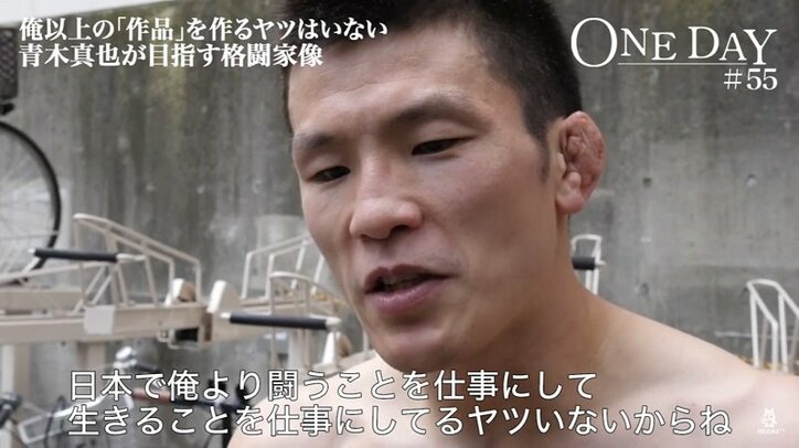 “勝負師”青木真也、「日本でオレより闘うことを仕事にして、生きることを仕事にしてるヤツいない」 2019/10/24 23:25 拡大する 現地時間2018年7月27日にフィリピン・マニラで開催されるONE Championship「REIGN OF KINGS」に参戦する“バカサバイバー”青木真也。試合の様子は<AbemaTV>で生中継される。『第1回横浜こどもホスピスチャリティープロレス大会』に“プロレスラー”として出場した青木に、試合後スタッフが感想を求めると「ひと仕事終わっただけ」とキッパリ。「粛々とやるだけ、前にある仕事を」と淡々と語る青木は「俺が1番ファイターとして生きてるから」と明言。「毎日練習して、プロレスやって、格闘技の試合して、他の仕事も一生懸命全力でやって、とにかく俺が1番プロのファイターなんだよ」と、同業者たちに挑戦状を叩きつけるかのような発言をする。 続きを読む