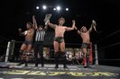 チャンピオンチームは竹下幸之介、彰人、勝俣瞬馬のユニットALL OUT。挑戦者は女子選手、センダイガールズプロレスリングの里村明衣子&DASH・チサコ&カサンドラ宮城である。