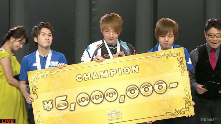 イタザンオーシャンが優勝!賞金600万をゲット/ストVオールスターリーグ 2019/10/24 22:17 拡大する 7月28日、ストリートファイターVのプロゲーマーが集った「RAGE STREET FIGHTER V All-Star League」の上位3チームによるGRAND FINALSが行われた。リーグ戦3位のイタザンオーシャンが準決勝でウメハラゴールドを3-1で撃破。続く決勝でもフジムラエメラルドを3-1で破り優勝の栄冠を手にした。イタザンオーシャンには優勝賞金600万円、2位のフジムラエメラルドには300万円、3位のウメハラゴールドには100万円が贈られた。 続きを読む