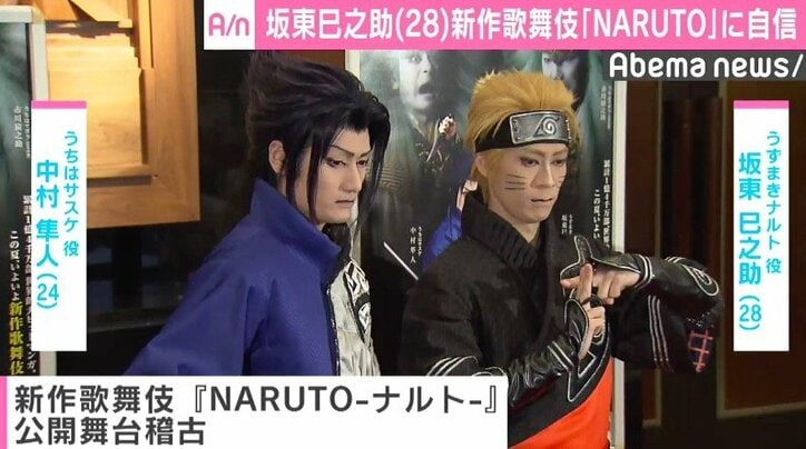 坂東巳之助、新作歌舞伎『NARUTO』に自信「全場面が見所」 2018/08/04 07:00 拡大する 歌舞伎俳優の坂東巳之助(28)、中村隼人(24)が3日、東京・新橋演舞場で新作歌舞伎『NARUTO-ナルト-』の公開舞台稽古を行った。 同作は、国内のシリーズ累計発行部数が、1億4千万部を突破した人気コミック『NARUTO-ナルト-』を新作歌舞伎として上演。主人公の落ちこぼれ忍者・うずまきナルトを巳之助、ナルトの親友でライバルの、うちはサスケを隼人が演じる。 なお、今作は、単行本全72巻、700話に及ぶ長編漫画を3時間に集約した舞台になっている。巳之助は、「全72巻という膨大な物語の中から、ここをやらねばならないという場面を選りすぐってやってきたので、冗談抜きでノンストップで進んでいく、全場面が見所な舞台になったと思います」と自信をのぞかせた。 続きを読む