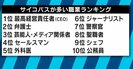 イギリスの心理学者のケヴィン・ダットンが研究の結果作成した「サイコパスが多い職業ランキング」によれば、1位が最高経営責任者(CEO)、2位が弁護士、3位が芸能人・メディア関係者などとなっている。
