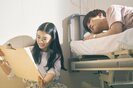この度、解禁されたのは、そんな⼆⼈の恋が芽⽣え惹かれあっていく、病室での場⾯写真だ。夜が明け、つぐみはデザインパースの⾊付けを仕上げていく中で樹への想いがあふれてくることに気づく。樹もまた、つぐみの真剣な横顔を⾒つめ、いとおしさを感じ、⼀⽣諦めていた恋をする気持ちが再びあふれてくることに気づく。朝の優しい光に包まれながら⼆⼈で描き上げたデザインパースを⾒て喜ぶつぐみと樹。疲れきって寝てしまう樹の⼿にそっと⼿を添え、つぐみのあふれてくる想いが垣間見られる場⾯写真となっている。