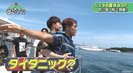 撮影当日は、絶好の夏休み日和。まぐろやワカメ、ひじきなどといった名物アイスを食べ、船の上ではタイタニックごっこをする亜嵐&裕太など、少年感全開で大はしゃぎ。そして釣り堀では海釣り対決!