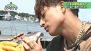 制限時間15分、釣った魚の総重量がいちばん重かった人が勝利という海釣り対決。メンバーそれぞれが竿を持ち、最初にマダイを釣ったのは魚嫌いの玲於。若干引き気味の玲於をヨソに、続いてやはりマダイをGETした裕太は、マダイにチュッとキス。