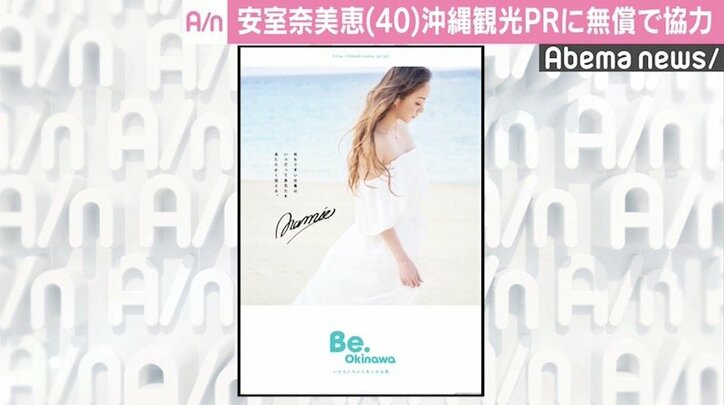 安室奈美恵、故郷の観光ブランド「Be.Okinawa」に無償協力へ 2018/08/14 12:10 拡大する 9月16日に引退する歌手の安室奈美恵(40)が、故郷・沖縄の観光ブランド「Be.Okinawa」のPRに無償協力することが14日に発表された。 「Be.Okinawa~いのちに力をくれる島~」は、沖縄を訪れる人が「美しい自然とあたたかい人たちに囲まれて、本当の自分を取り戻せる島」であることを表現。故郷の観光ブランドに賛同した安室が選んだ「ぬち(命)ぐすい(薬)の島はいつだってあなたをあたたかく迎える。」というメッセージが、沖縄の海で撮影したポスターやブックレットに添えられている。 続きを読む