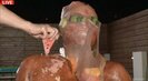約1時間経過後、野田の様子を確認しようと屋上に上がったよゐこのふたりとゲストの「尻職人」倉持由香は、目の前の光景に声を失った。全身を茶色に染め、さらに頭にパンストを被って、もはやヒトとしての形態すら維持できていない野田が居たからだ。下半身にはカナブンが一匹、そして頭部には蛾が一匹止まっていた。小さな成功ではあるが、野田はその程度で満足するような男ではない。「果物を頭の上から入れてください」と懇願すると、よゐこと倉持が、スイカやメロン、キーウィなどを潰しながら入れていく。「蜜袋になるんです」「これくらいやらないとミヤマクワガタは取れないんです」と野田が絶叫した。