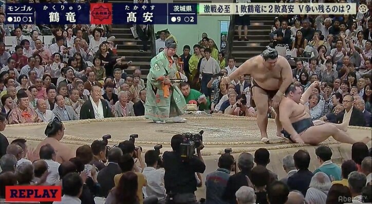 「横綱のあんな姿を見たことない!」 鶴竜2敗で座布団舞う! 高安の豪快な上手投げにひっくり返る 2019/10/24 20:50 拡大する <大相撲秋場所>◇十二日目◇20日◇東京・両国国技館 1敗の横綱・鶴竜(井筒)が、2敗の大関・高安(田子ノ浦)に上手投げで敗れて2敗目を喫した。立ち合いから上手の取り合いとなった一番は、鶴竜が巻き返そうとした瞬間、高安の力強い上手投げが炸裂。鶴竜は土俵に尻もちをつき、勢いよく、ひっくり返った。 AbemaTVで解説を務めていた元関脇・北勝力の谷川親方は「高安は本来、右からの上手投げが強いんですが、左の上手投げも強かったですね。横綱のあんな姿は見たことがありません」と話し、高安の力強さを称えると同時に、まさかの展開に驚きを隠さなかった。 続きを読む
