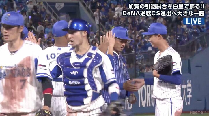 横浜DeNAがAクラス復帰寸前!3連勝で3位巨人とゲーム差なしに 京山は1回1死から投げ切る“準完投” 2019/10/24 20:50 拡大する 横浜DeNAが、9月21日に行われた対中日24回戦に9対1で快勝した。順位は4位のままながら、3位巨人とのゲーム差は「0」に。3位以下が1ゲーム差内にひしめく超熾烈なCS進出争いにあって、3年連続Aクラスへさらに詰め寄った。 この日は横浜一筋9年の加賀が1回に引退登板すると、その後を受けた京山が尻上がりに調子を上げて、9回まで1失点で投げ切る“準完投”勝利。打線も加賀の引退と、京山の熱投に応えようと奮起。2回に桑原の勝ち越し9号ソロでリードすると、5回には主砲・筒香がライト最上段へと飛んでいくリーグトップタイの36号3ランなどで突き放した。 続きを読む