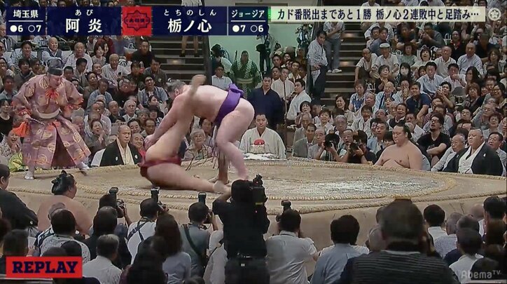 カド番・栃ノ心ホッとひと息 十四日目でようやく勝ち越し 最短大関陥落を回避 2019/10/24 20:50 拡大する <大相撲秋場所>◇十四日目◇22日◇東京・両国国技館 大関・栃ノ心(春日野)が前頭四枚目・阿炎(錣山)を下手投げで下し勝ち越しを決め、カド番脱出に成功した。 栃ノ心は先場所、新大関として期待されていたが、取組で足の親指を痛めて途中休場。今場所は大関昇進から2場所目にして初のカド番で、負け越せば最短となる2場所での陥落となるところだった。前日には正代に敗れ、自身に向けて怒りを見せていたが、うるさい阿炎を相手にがっちり左まわしを引くと、暴れる相手をもろともせず強烈に投げつけた。 続きを読む