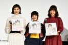 巨大なプリンに場内からは拍手と驚きの声が漏れる中、小林らは笑顔で試食した。さらに、高坂監督からサプライズで、徹夜で仕上げたという直筆の似顔絵がプレゼントされると、3人は大感激。小林は「おっこちゃんみたいに描いていただいて、本当に嬉しいです! 一生のお宝にします!」と目を輝かせていた。