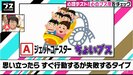 Cを選んだのは13人中丸山ただ一人で、矢作は「優しいもんね」、小木も「サッカーのようなチームプレーに合ってるんだろうね」と感心。丸山は「サッカー選手はお化け屋敷を選ぶ人が多い気がしますね」と照れ笑いしていた。