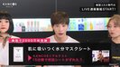 次に同商品を取り出し、「見れば分かる」とその薄さが0.21mmであることを強調すると、想像以上の薄さに村上が「湯葉じゃん!」とやや上滑り気味のツッコミ。しかし、同じくMCの江野沢愛美が「薄いがガーゼのような肌触り。ぴったりと吸い付く素材感で落ちてこないので、使用中の自由度が高い。極薄でも保湿力が抜群」など商品の使用感を読み上げてナイスフォロー。その品質の高さを裏付けてみせた。