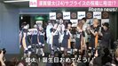 また、会見中、誕生日の須賀へサプライズが。数人が大きなバースデーケーキを抱えて登場すると、全員が「健太!誕生日おめでとう!!」と大合唱。「本当にうれしい。マジでびっくりした」と驚いた様子の須賀は、「泣いた?」と聞かれ笑顔で「泣いた」と即答。温かい笑いが起こる中、須賀は報道陣に向けて「記事に『涙した』と書いておいてください(笑)」と呼びかけていた。