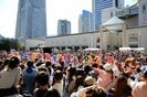 フォトセッションの後、キャスト陣が名残惜しくもその場を後にすると、55人のプリキュアによるダンスパレードが開始。パレードを見ようと、会場にはなんと1万人もの観衆が詰めかけた。会場を埋め尽くす観衆の中、プリキュアたちがダンスや名乗りを交えて進むと、子どもたちが曲に合わせて振り付けを踊ったり、通りすがりの人たちみんなが揃って立ち止まったりと多くの人の関心を集め、パレードは熱狂の中で無事に幕を閉じた。
