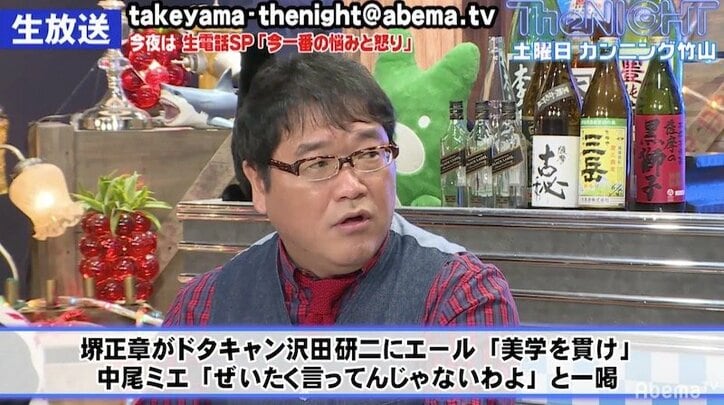 カンニング竹山、沢田研二ドタキャン騒動に「俺も帰ると思う」 2019/03/15 09:37 拡大する 20日深夜、『カンニング竹山の土曜The NIGHT』(AbemaTV)が放送された。 「酔っ払い竹山のぶった斬りワイドショー」のコーナーで竹山は、沢田研二が17日に予定していたライブをキャンセルしたことに対して、歌手で女優の中尾ミエが「ぜいたく言ってんじゃないわよ」と一喝した話題に触れる。 竹山は、沢田を批判する世間の声に一定の理解は示しながらも、ライブを行うにあたっては“イベンター”の存在があり、今回のさいたまスーパーアリーナでのライブは、イベンターからの提案だったのではと推察する。 続きを読む