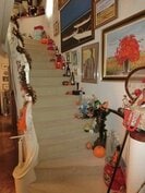 デヴィ夫人は、「今年も ハロウィンの飾りつけをしました」といい、「サロンに、玄関に、階段に、廊下」と様々な場所にハロウィンの飾りつけがされている自宅の写真を公開。続けて、「夜遅く帰ると 玄関先で出迎えてくれるのは なんとこの不気味きわまりない魔女!」と、緑色の顔の不気味な魔女を紹介。