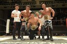 石川が竹下に場外でテーブルクラッシュ・ファイヤーサンダーを決めれば、竹下と丸藤はサンドイッチ式の合体ニー、丸藤は“大巨人”石川に得意の不知火、さらに佐々木が得意のクロスフェース。見せ場たっぷりだったこの試合は決着つかずフルタイムドローに。