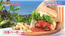 まるで地中海の街並みを思わせるこの場所は3年前にオープンした沖縄の新観光スポット。40店舗以上のお店が軒を連ね、食事や買い物を楽しむことができる。6人は早速規格外の大きさの『氾濫バーガー』を食べることに。注文を受けてから焼く特大パティ2枚と超厚切りベーコをカリカリチーズの上にのせた、高さ20㎝はあろうかというバーガーだ。大きな口でバーガーにかぶりつくグラドル2人。最後には6人で仲良くハンバーガーを「あ~ん」と食べさせ合って津田(ダイアン)の「スーを差し上げます!(津田のギャグ)」が出た。