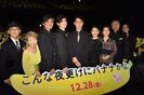 俳優の大泉洋が12日、都内で行われた映画『こんな夜更けにバナナかよ 愛しき実話』(12月28日公開)の完成披露試写会に、高畑充希、三浦春馬、渡辺真起子、竜雷太、綾戸智恵、佐藤浩市、原田美枝子、前田哲監督らと参加した。