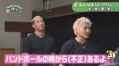 スポーツトレーナーが見守るなか、ガチで検証するというこの企画。最初の種目であるハンドボール投げで、亜嵐は投げる時に2メートルの枠から足がはみ出していたことが判明し、1投目は失格。さらに握力測定では、測定する手が体に触れてはいけないのに、測定器を持った右手が膝に触れており、メンバーから「ついちゃってるよ」と鋭い指摘が。