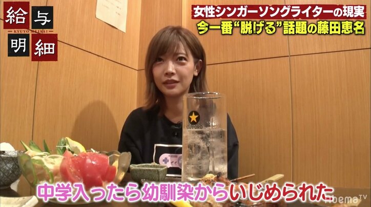 “今一番脱げるシンガーソングライター”藤田恵名、イジメを受けた過去明かす 2019/03/15 09:37 拡大する グラビアアイドルとシンガーソングライターを兼業する“今一番脱げるシンガーソングライター”こと藤田恵名が、中学時代にイジメを受けていた過去を告白した。 12月2日にAbemaTVで放送された「給与明細」では、女性シンガーソングライターたちの金銭事情に迫った。水着姿でステージに立ったり、バストトップだけを隠したヌード写真をCDのジャケットにしたりと、“今一番脱げるシンガーソングライター”の異名を持つ藤田も登場した。 続きを読む