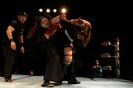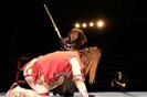 世羅が有刺鉄線を巻きつけた竹刀で思い切り殴る。「これが私のやってきたことです」。そんな思いだったという。藤本も大技ラッシュ。爆破バットもためらいなく振り回した。この試合一発目の爆破で、世羅は腕に裂傷を負い、髪の毛が燃えることに。「爆破攻撃をするか、しないか」で迷うそぶりがゼロだったあたりも、レスラーとしての藤本の凄味だろう。
