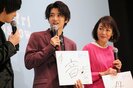 舞台挨拶の後半では、登壇陣が今年一年を漢字一文字で表現。本作でギターに初挑戦した飯島は、今年一年を「音」という文字で表した。「今回の作品もそうなんですけど、初めて音楽に触れさせていただいて、音のメッセージ性を知ることができたので」と、「音」という文字に込めた想いを説明。また、飯島は「音」という文字と共に、LINEスタンプになっているキャラクター“愛唄くん”をフリップに描いており、「上手ですよね?」と自画自賛した。
