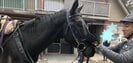 それから1時間ほどして、改めて更新した別のブログには、馬から降りる様子の写真と、馬の顔に手を添えた2ショットを公開し、「ありがとう」と感謝のコメントをつづった。