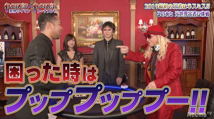 マルチに活躍するTRFのリーダー・DJ KOOが1月18日、AbemaTV「GACKTプロデュース!POKER×POKER~業界タイマントーナメント」に出演。EXILE NESMITHとの1月トーナメント大会決勝戦で、珍言を連発した。