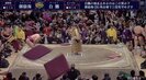 左脚の怪我もあり、八日目から休場。その後、十一日目から土俵復帰を果たした御嶽海は、早速全勝の横綱と対戦。立ち合い、激しく当たった御嶽海に対して、上手が引けなかった白鵬は、力を発揮することなく土俵の外に押し出された。
