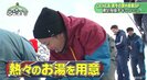 冷たい足の裏をかかえ、スタッフの救助そりに乗せられて帰ってきた龍友には、バケツでの即席足湯が用意されたが、今度はお湯が熱すぎ。雪をいれて温度を下げるも、今度は冷たすぎて龍友は大混乱。冷たい、熱い、冷たいと大騒ぎの龍友に一同は腹を抱えて大爆笑。結果、記録は50.3メートルだった。