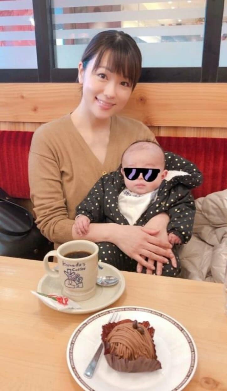 この日本田アナは「今日は息子の3ヶ月健診に行ってきました 体重6005g、身長61cm 順調に成長してくれてて一安心です」と報告し、「病院に行ったあと、コメダ珈琲で休憩 最近チョコづいているので、今日もチョコモンブランにしました」と息子を抱いてモンブランと一緒に撮影した写真を公開、「でも、ちゃっかり主人のシロノワールももらいましたよ」と夫の写真なども公開した。