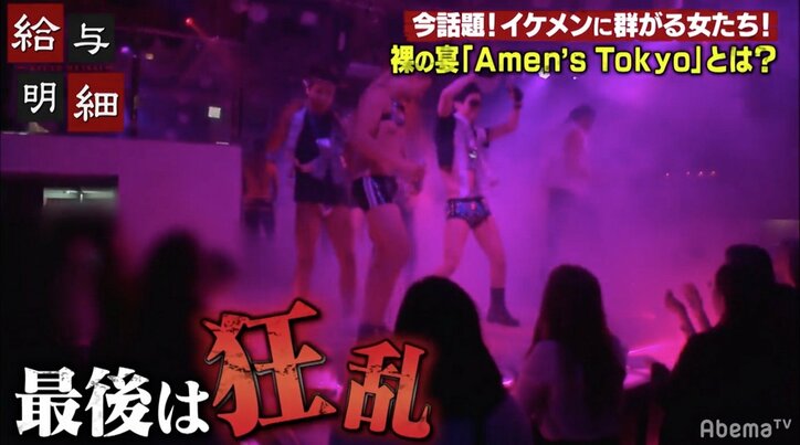 チップが飛び交う酒池肉林の夜 女性客大興奮のメンズストリップに潜入 2025/04/18 16:16 拡大する 屈強なイケメンたちによるメンズセクシーショー「A men's Tokyo」に、2月25日放送のAbemaTV「給与明細」が潜入した。そこには裸のダンサーたちに抱かれ、欲望のままに散財する女性たちの姿があった。 今も昔も流行の発信地であり続ける東京・表参道で、女性を夢中にさせる新たなブームが起こっている。それがメンズセクシーショーだ。90年代に一世を風靡した「J-Men's Tokyo」が4年前に「A men's Tokyo」として復活。そこでは毎週、筋肉の鎧を身にまとったイケメン男性たちによるセクシーなエンターテインメントショーが行われている。営業は毎週月曜の夜7時から11時の4時間のみ。取材当日も、全国から刺激を求めやってきたOLや看護師などの若い女性たちが開場前から列をなしていた。 続きを読む