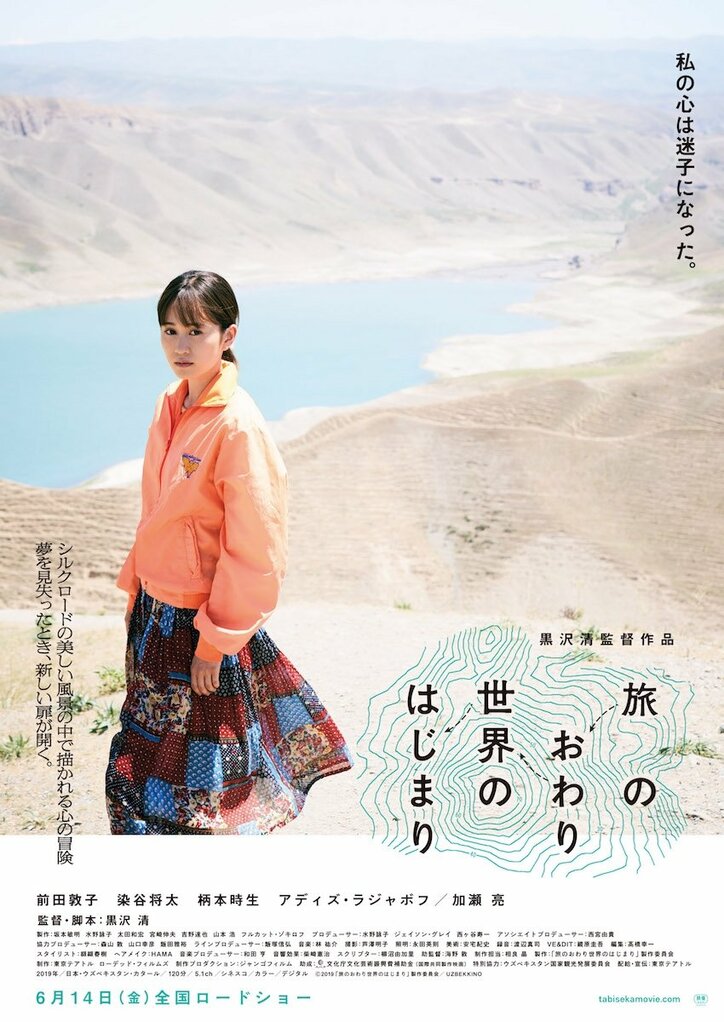 国内外で圧倒的評価と人気を誇る映画監督・黒沢清が、前田敦子、加瀬亮、染谷将太、柄本時生を迎え、シルクロードを舞台に描く旅の物語『旅のおわり世界のはじまり』の公開初日が6月14日(金)に決定。あわせて、前売鑑賞券ムビチケカードが3月15日(金)より発売となる。この度、新たなポスタービジュアルと予告映像が解禁され、本作で主演を務めた前田敦子が、劇中で歌唱を披露することが明らかになった。